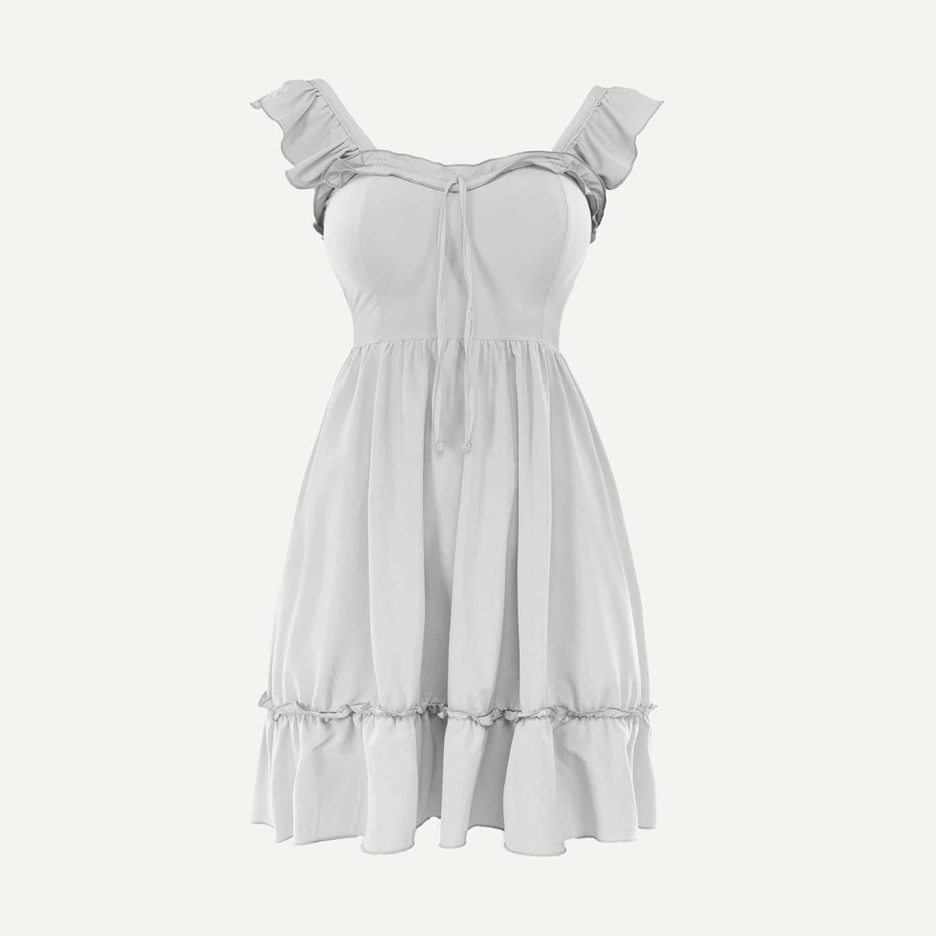 احتضني مظهرًا ناعمًا وأنثويًا مع هذه الفستان القصير المصنوع من قماش لايكرا المريح والمرن الذي يوفر إحساسًا خفيفًا وقابلًا للتنفس. يتميز بتصميم جذاب مع تفاصيل صدر دقيقة تضيف لمسة أنيقة ومصقولة. مثالي للخروج في الصيف والمظاهر اليومية غير الرسمية، ومتوافر بمجموعة متنوعة من الألوان الجميلة لتناسب كل مزاج.