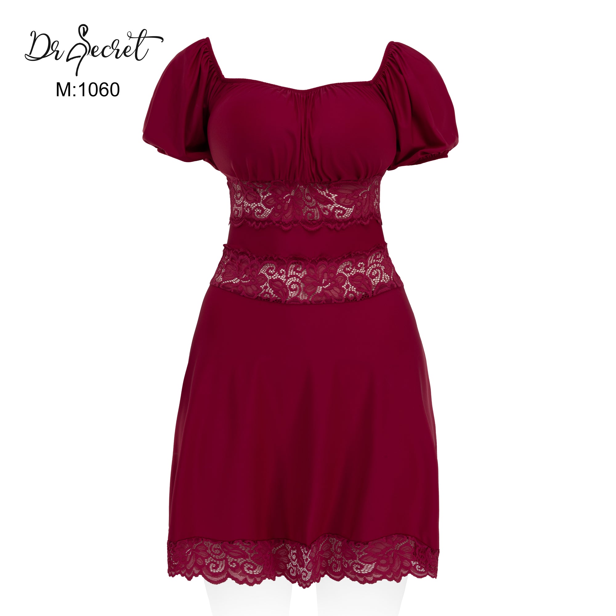 استمتع بالمزيج المثالي من الفخامة والراحة مع هذا الفستان الليلي الساحر المصنوع من قماش الميكروفايبر الناعم والبارد الملمس. يحيط صدره المستوحى من الكورسيه، المزخرف بالدانتيل الرقيق، برشاقة بخط الخصر، بينما تضيف الأكمام القصيرة المنتفخة لمسة من النعومة والسحر الرومانسي.