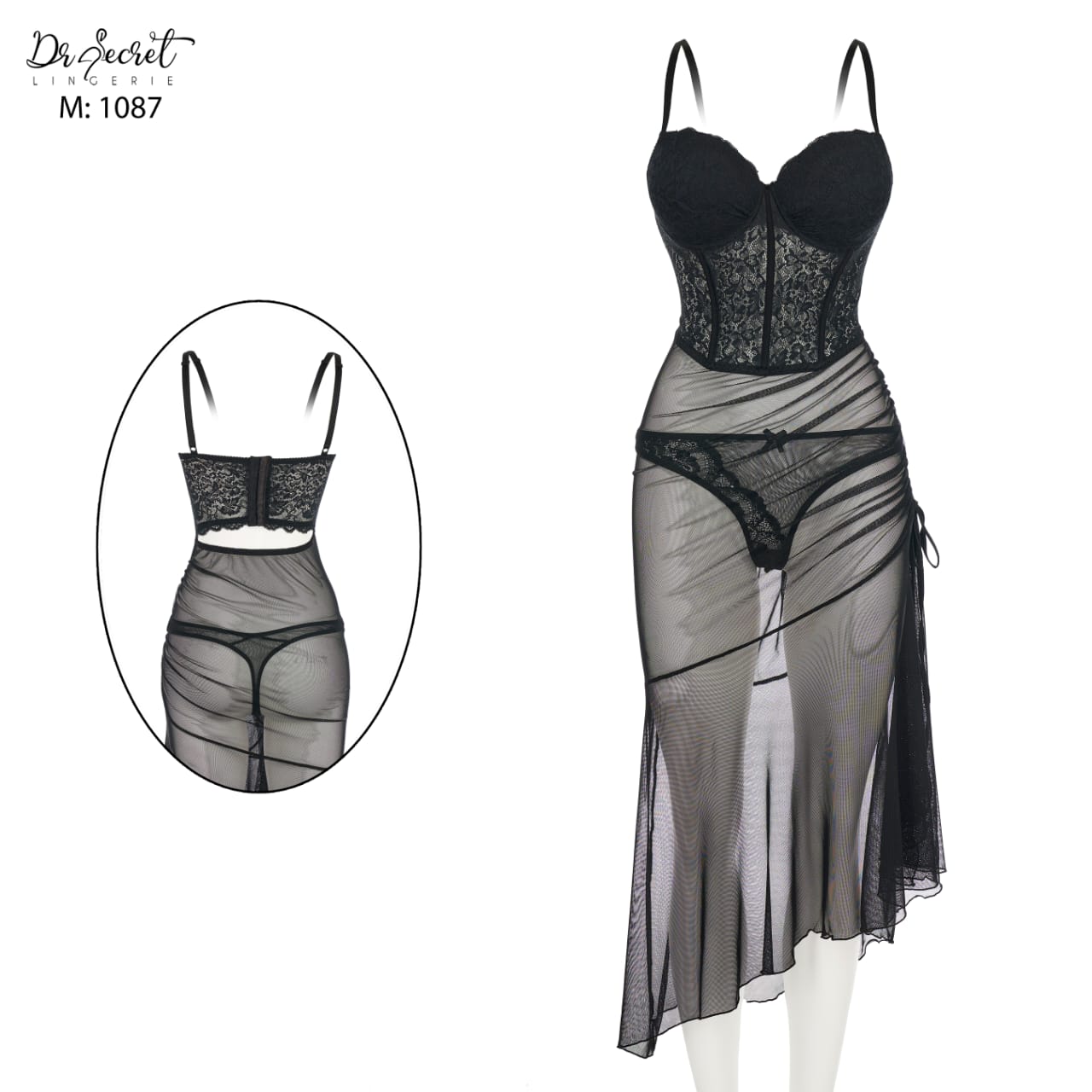 اجذب الأنظار في هذا التصميم الرائع من اللانجري الطويل، الذي يتميز بـ تفاصيل مستوحاة من الكورسيه الرقيقة التي تبرز قوامك بشكل جميل. مزين بـ زخارف دانتيل فاخرة ناعمة لمسة من الأناقة والرقي.