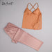 Indulge in comfort and elegance with this soft satin pajama set, perfectly blending femininity and sophistication. It features a delicate camisole with fine, criss-cross back straps and elegant lace accents on the sides, paired with full-length satin pants for an effortlessly luxurious feel whether lounging or sleeping. Available in a variety of refined colors to suit every taste — add it to your collection now for a chic, cozy home look.