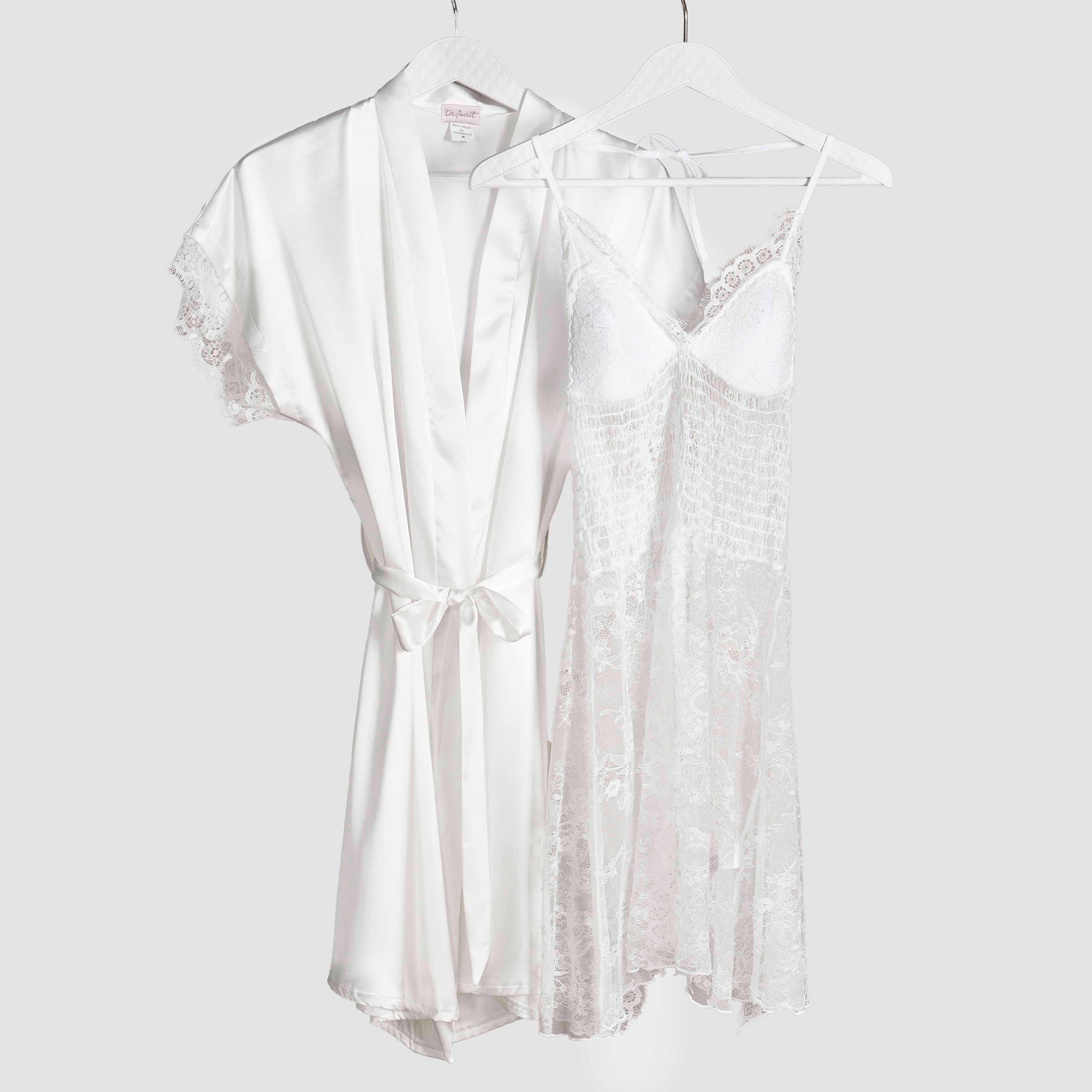 Indulge in an elegant, feminine look with this luxurious lace nightwear set. The set includes a delicate nightdress adorned with refined lace details, paired with a soft satin robe for a graceful and comfortable finish. A sophisticated design that perfectly balances luxury and ease, making it ideal for adding a touch of elegance to your intimate moments. Available in a timeless, elegant shade to suit every taste.