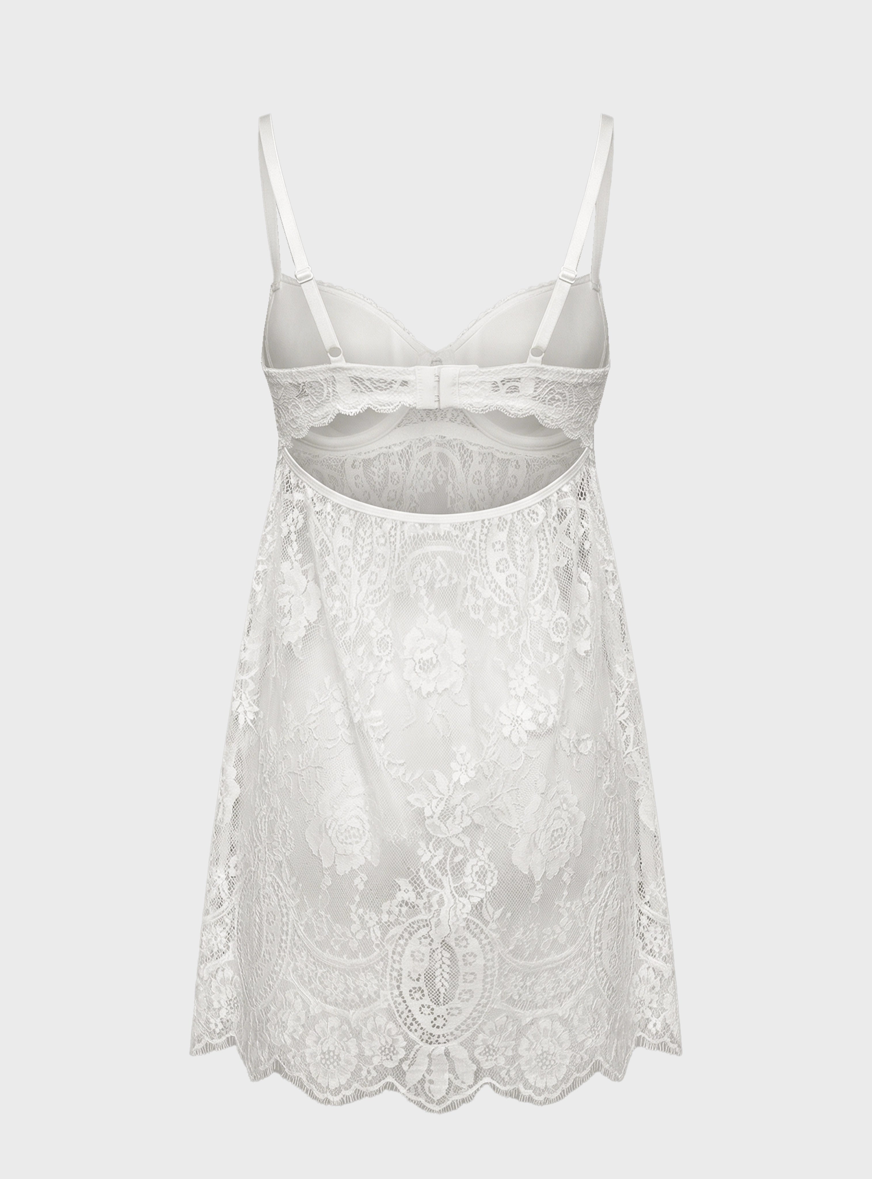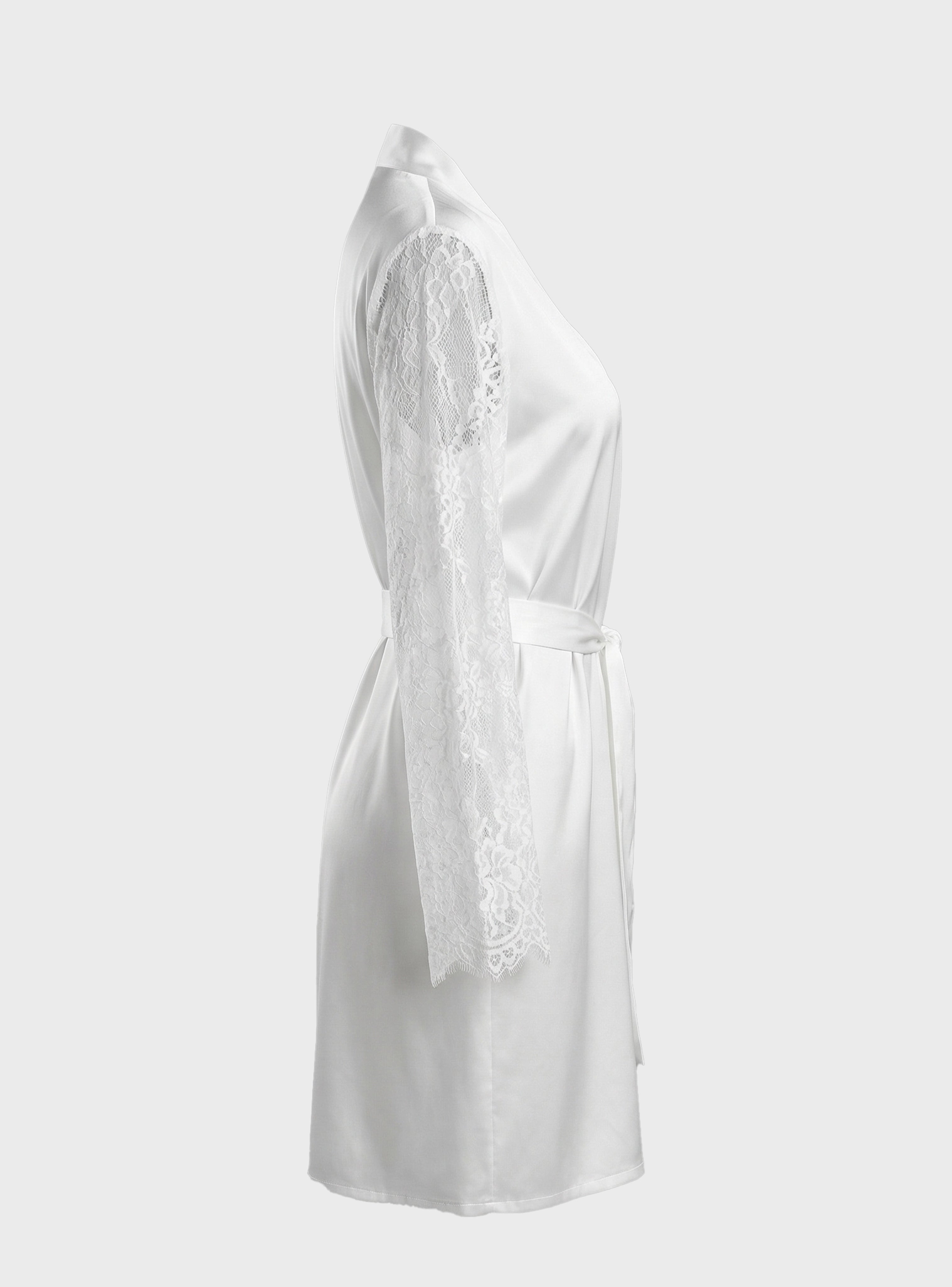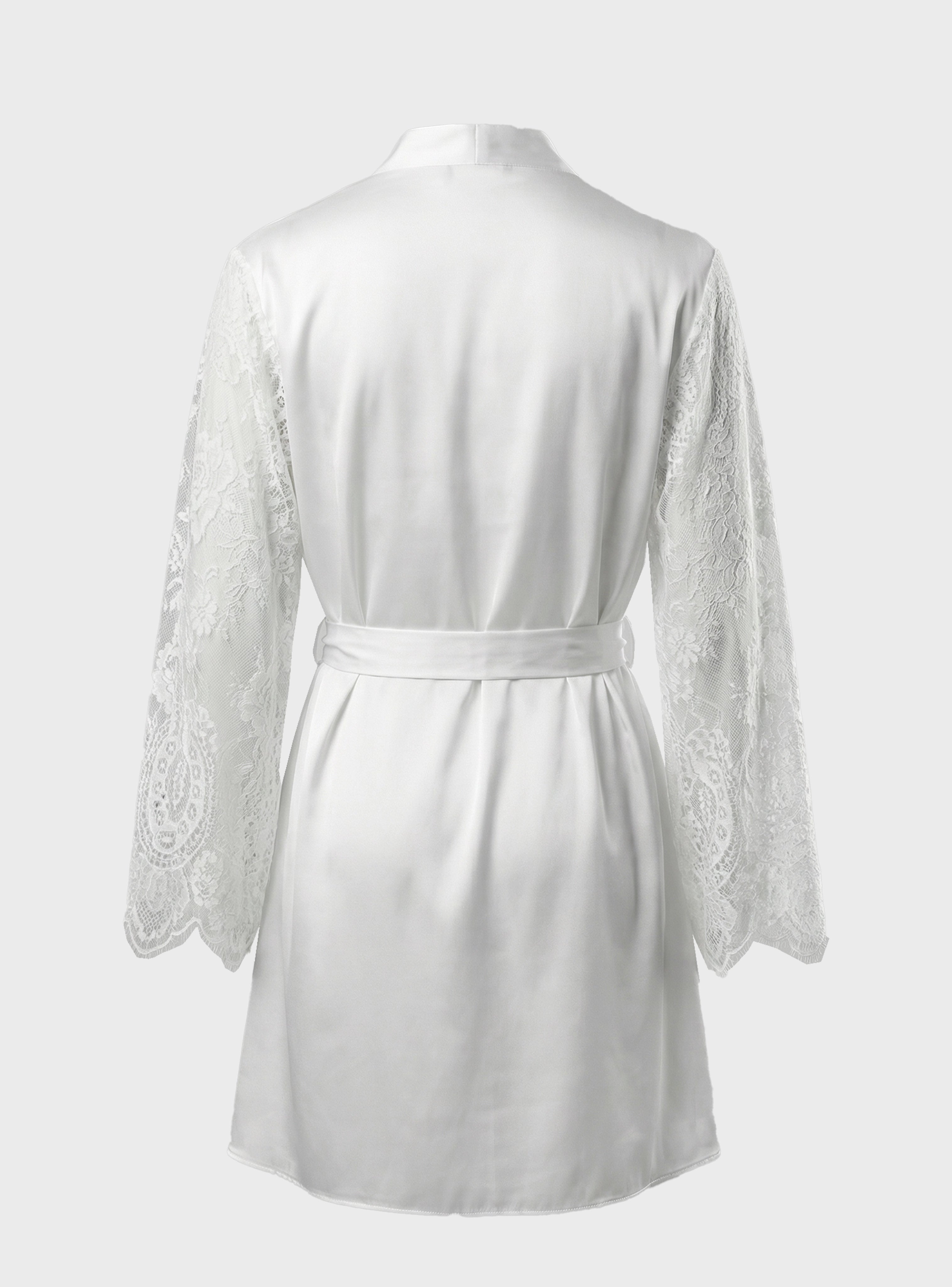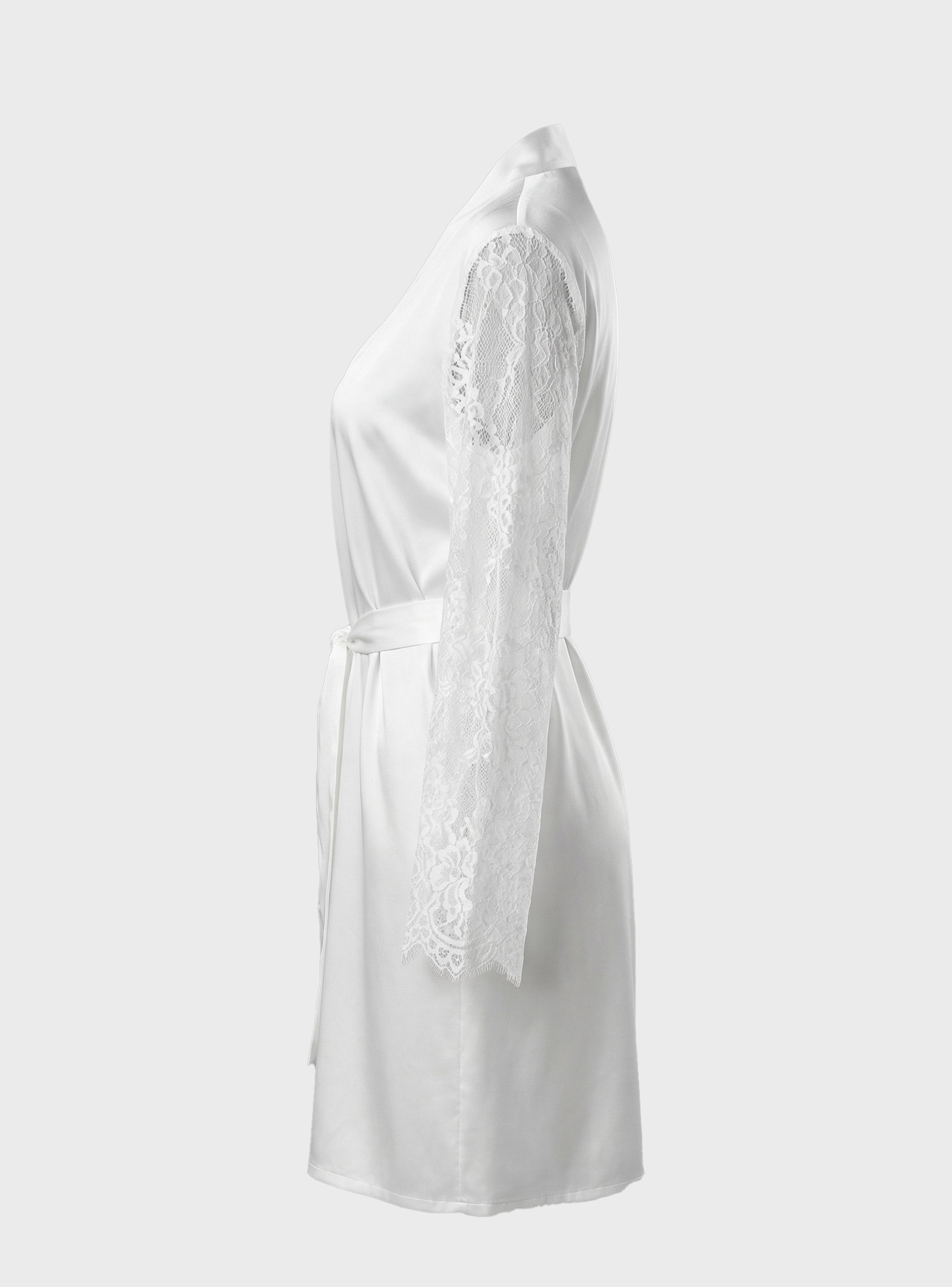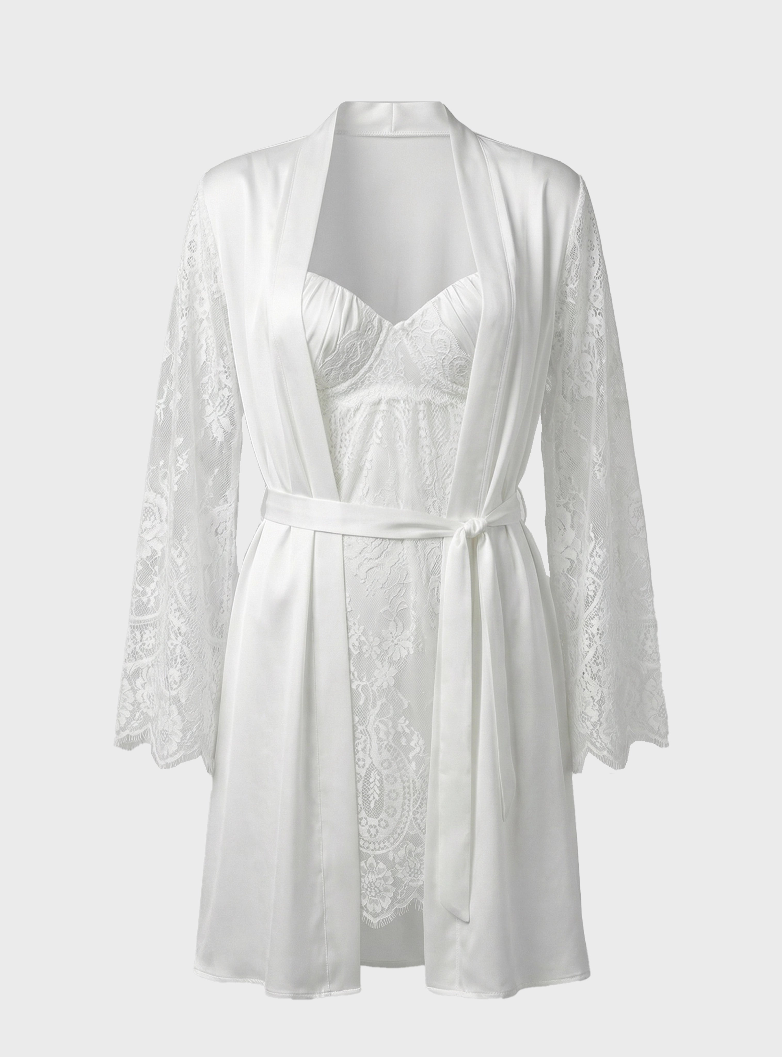 Embrace dreamy elegance with this luxurious set featuring a delicate nightdress and matching robe crafted from soft white lace and refined satin touches. The nightdress highlights your femininity with a graceful, alluring cut, while the robe is adorned with lace-trimmed sleeves for a sophisticated, polished finish.