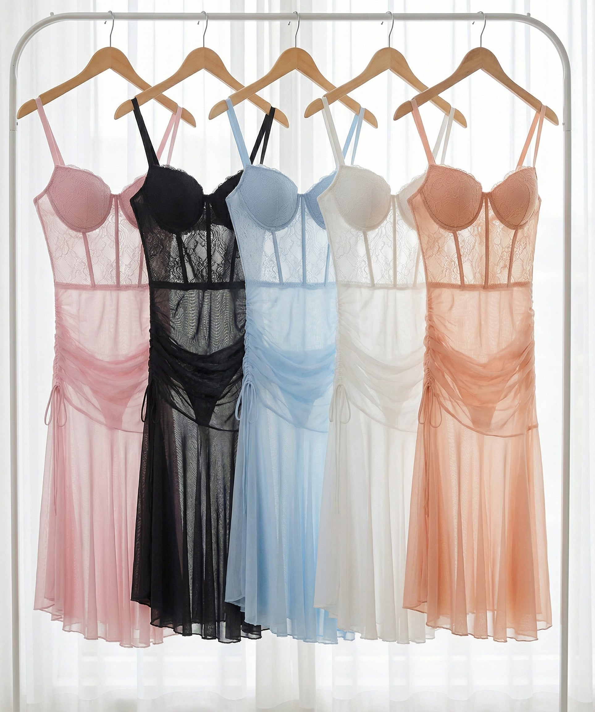 Turn heads in this stunning long lingerie design, featuring delicate corset-inspired details that beautifully flatter your silhouette. Adorned with soft luxury lace accents for a touch of elegance and sophistication.