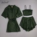 Indulge in elegance with this refined three-piece satin set, designed to bring effortless charm and comfort.