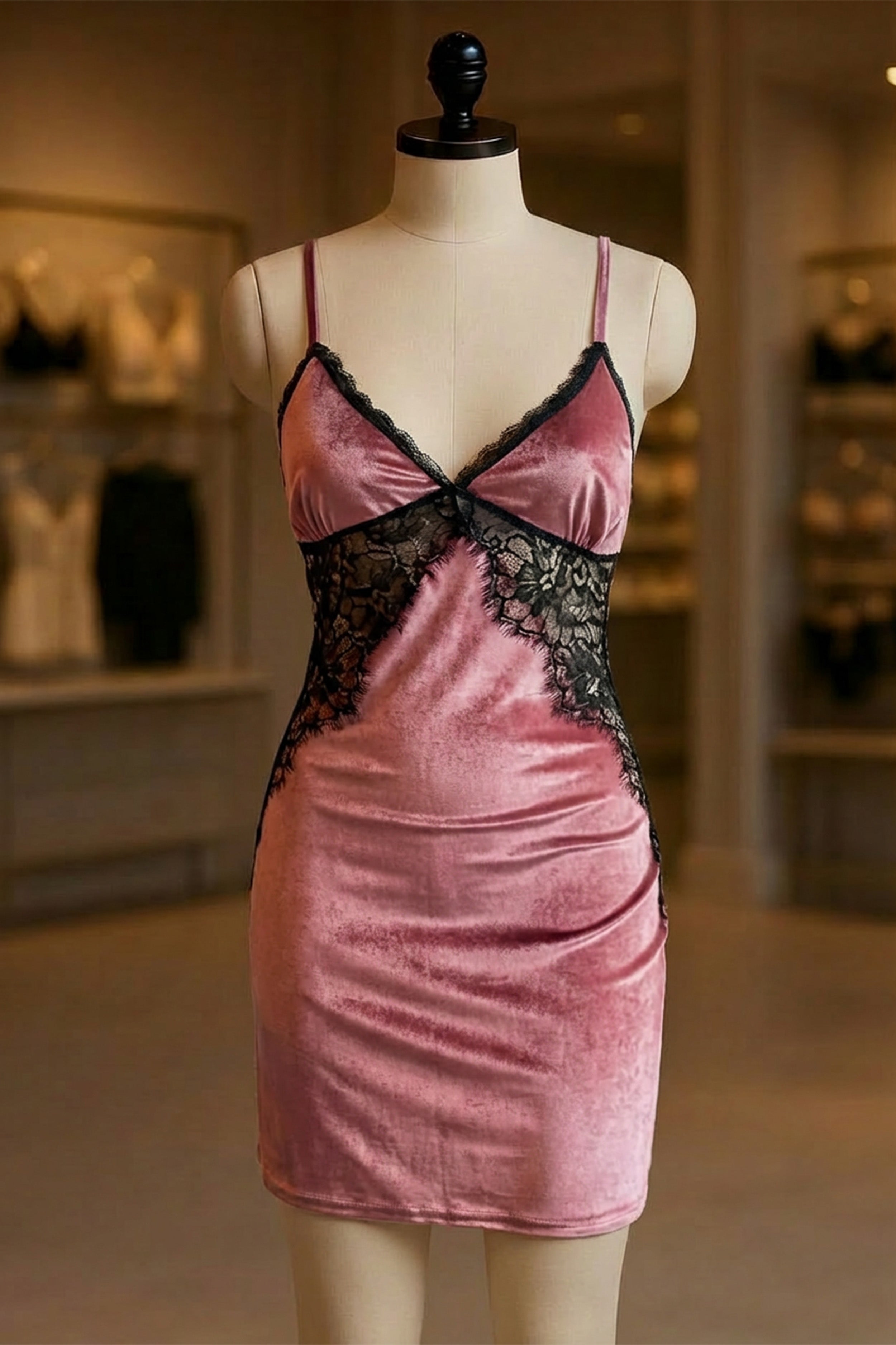 With its slender straps and velvet-lace contrast, this piece elevates your natural shape—perfect for intimate evenings, special nights, or any moment you want to feel confident, elegant, and unforgettable.