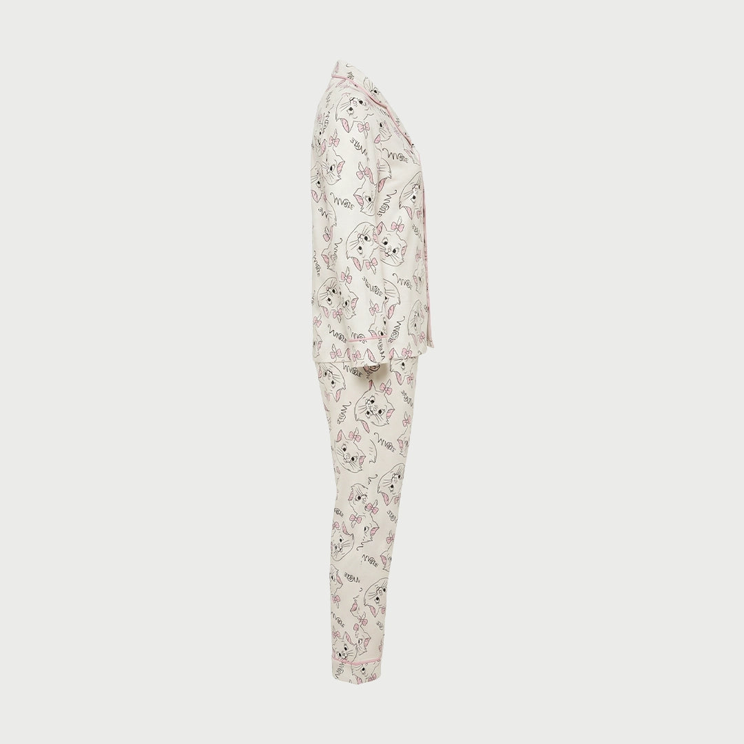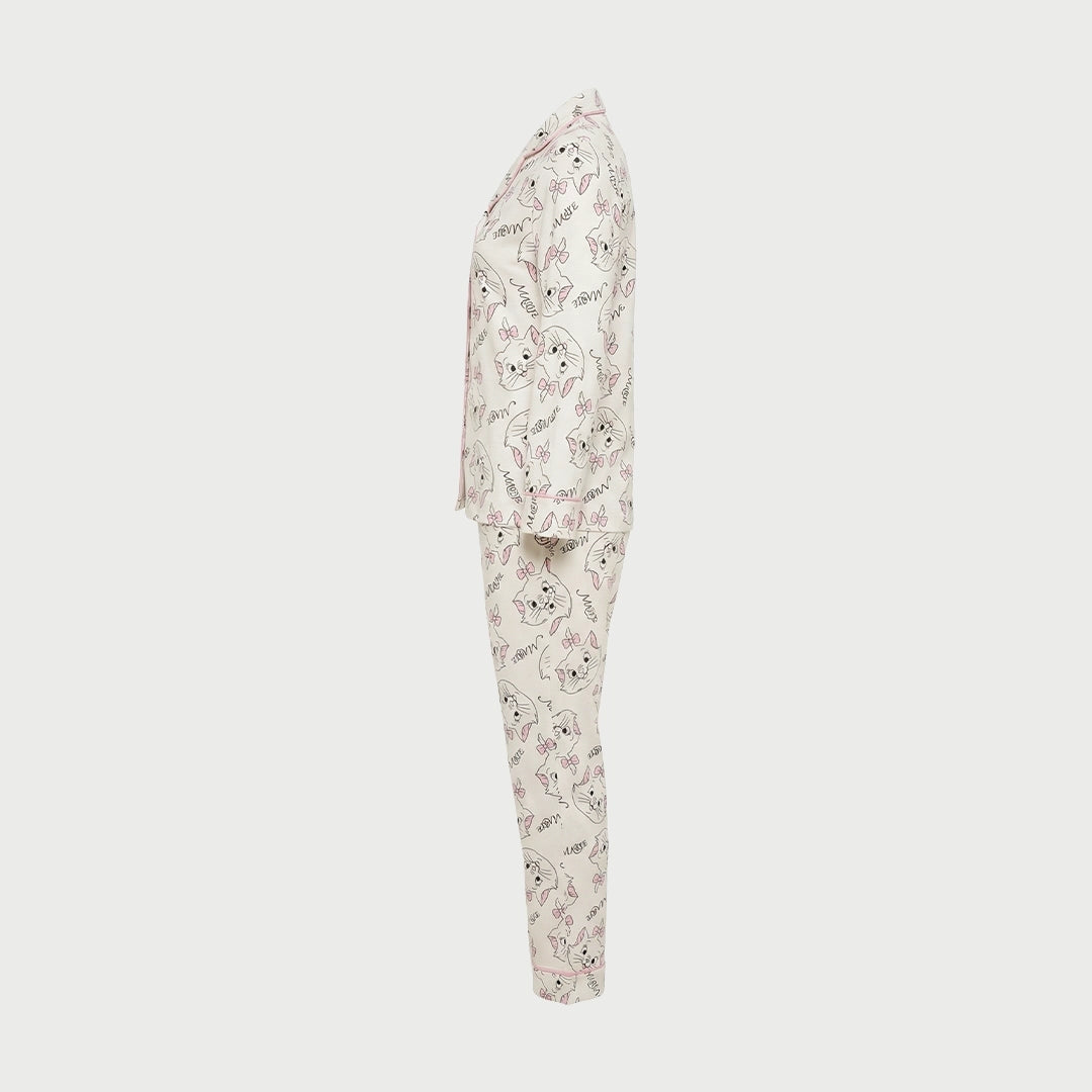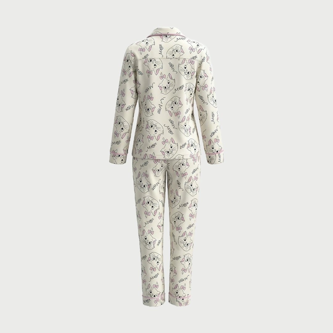 Add a playful and cozy touch to your nightwear collection with this adorable two-piece pajama set. Designed with a charming cat print and soft pastel details, this set brings a fun and feminine feel to your sleepwear.
